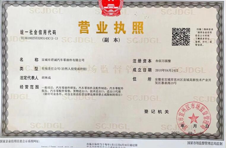 宣城市君誠汽車零部件有限公司是專業(yè)生產各類汽車鉸鏈及限位器的民營企業(yè),總投資3000余萬元,位于宣城高新技術產業(yè)開發(fā)區(qū),緊鄰宣廣、宣蕪高速公路,地理位置優(yōu)越,交通便捷。是“國家高新技術企業(yè)、知識產權貫標企業(yè)、安徽省商標示范企業(yè)、安徽省科技型企業(yè)”,已獲得國家發(fā)明專利18項,實用新型發(fā)明專利4項。主要從事各類汽車門鉸鏈及限位器的設計、研發(fā)、生產、和銷售,具有專業(yè)的合作團隊。自2015年正式生產至今,已形成一整套完整的生產、質量管理體系。并已通過國家強制性產品認證“3C”體系認證及IATF16949國際質量體系認證。在生產設備上,公司擁... 【查看詳細】